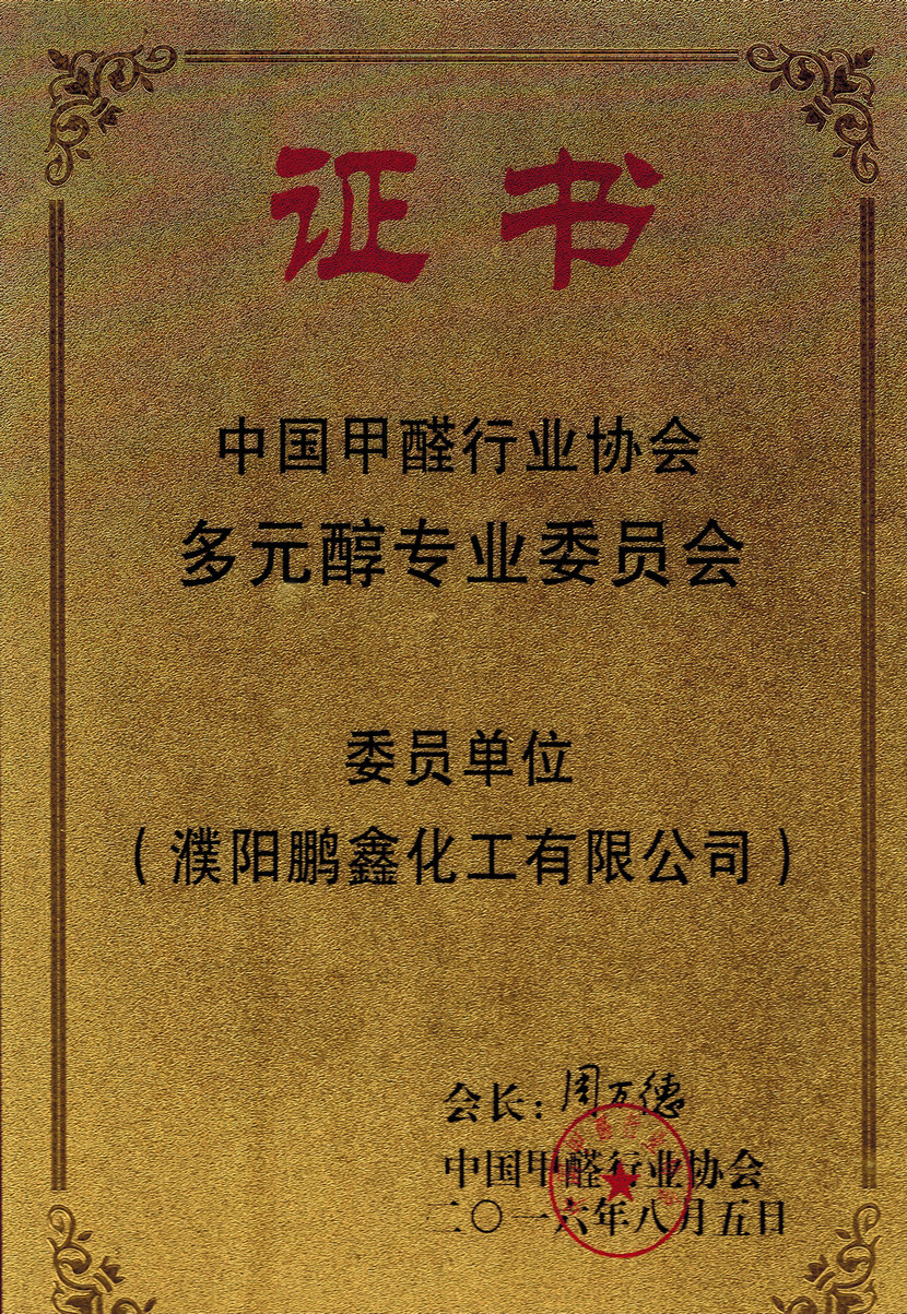 甲醛的下游產(chǎn)品主要有季戊四醇、新戊二醇、三羥甲基丙烷等。為解決甲醛產(chǎn)能過剩,提升和發(fā)展多元醇行業(yè)生產(chǎn)規(guī)模、技術(shù)力量,提高行業(yè)發(fā)展的整體水平,我公司和國內(nèi)主要多元醇生產(chǎn)企業(yè)聯(lián)合申請,在甲醛行業(yè)協(xié)會框架下,于2016年8月成立了多元醇專業(yè)委員會。